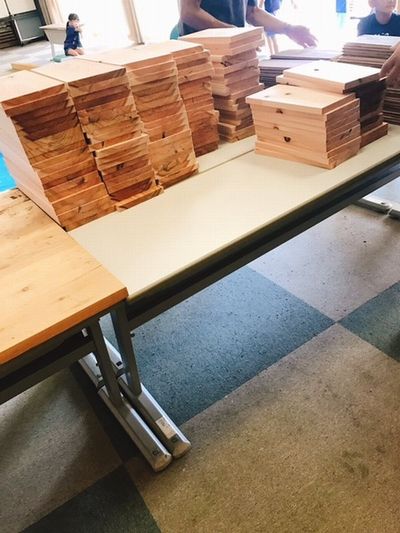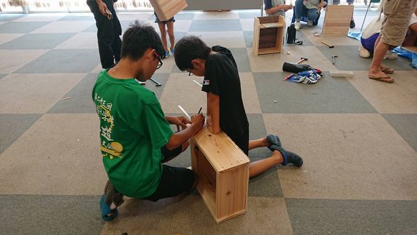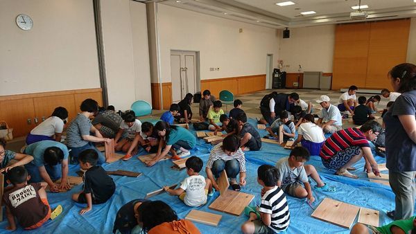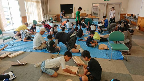8月4日の8時半から三野町保健センターに集まって25人の小学生と本棚を作りました
