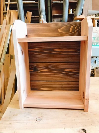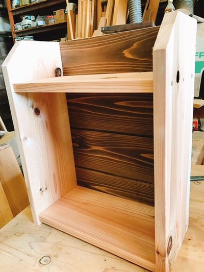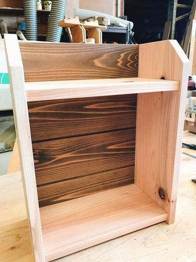 金槌を使って釘を打ったりのこぎりで木を削ったりしてかっこいい本棚が出来上が りました!