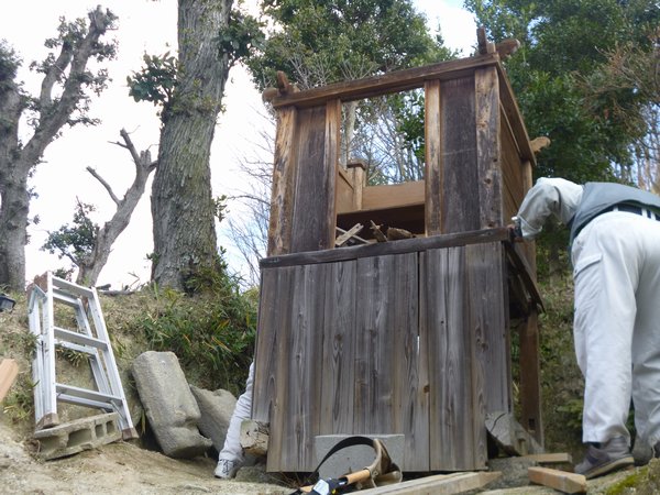三野町大見の頸掛神社本殿が古くなったので修繕をすることになりました。