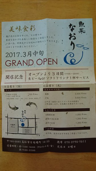 高松市 店舗 『魚菜 なおり』さま 来週よりオープン