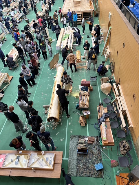 木材を鉋で薄削りする競技を間近で見させてもらいました