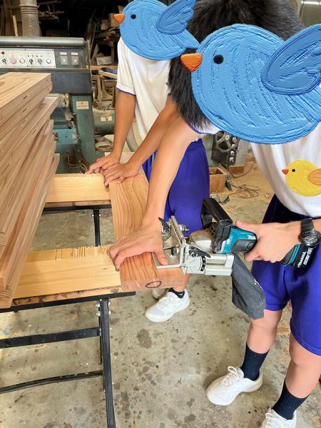2人とも真面目に大工さんの仕事に取り組んでくれました
