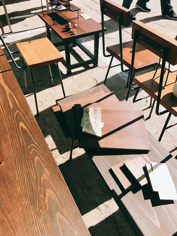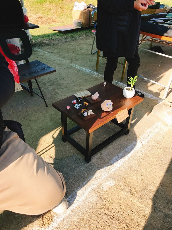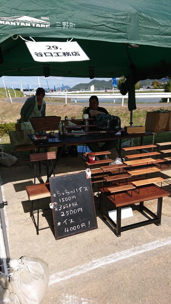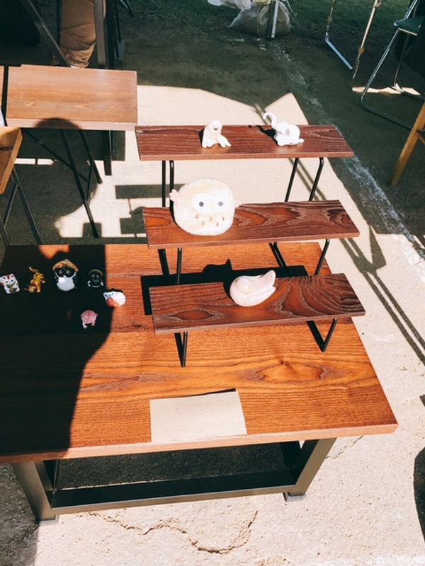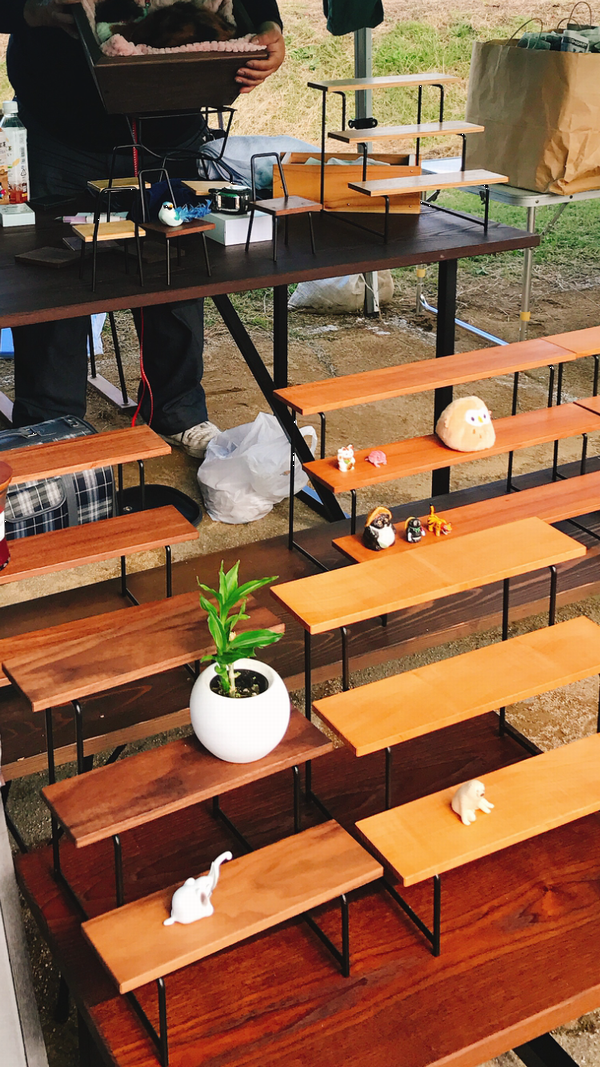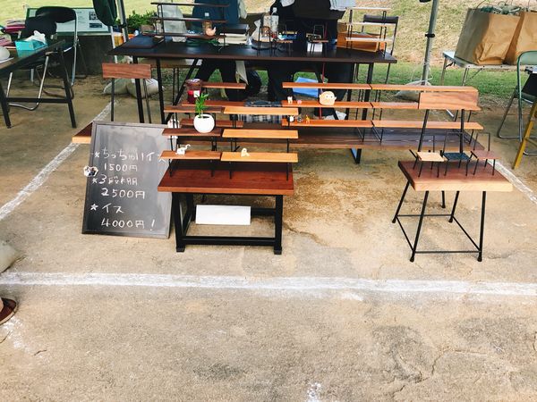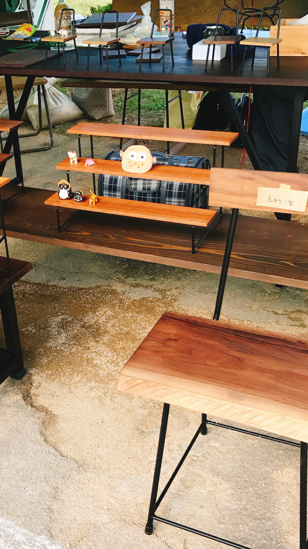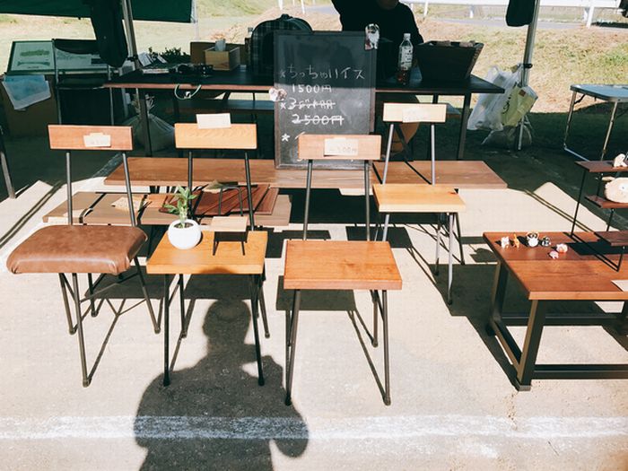 昨日で商品がほぼ売れたので去年作った椅子などを持ってきました