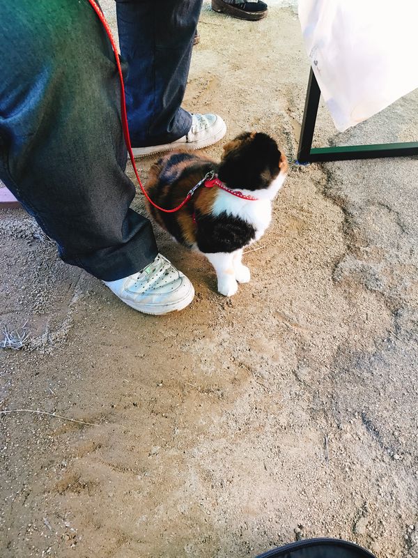 警戒して低い体勢で歩くみけを見て人がざわざわしてました