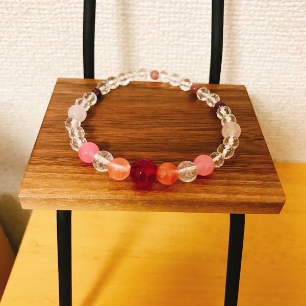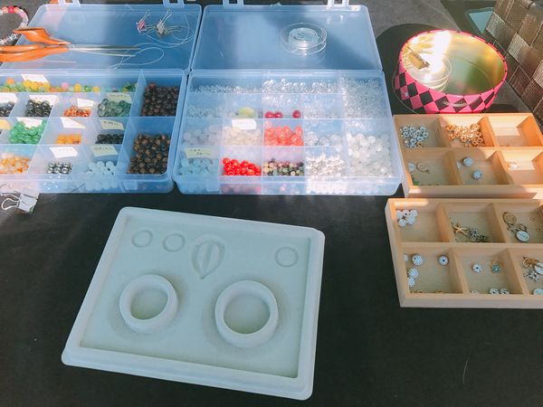 隣のブースの大西石材さんでパワーストーンを組み合わせてみけの首輪を作りました