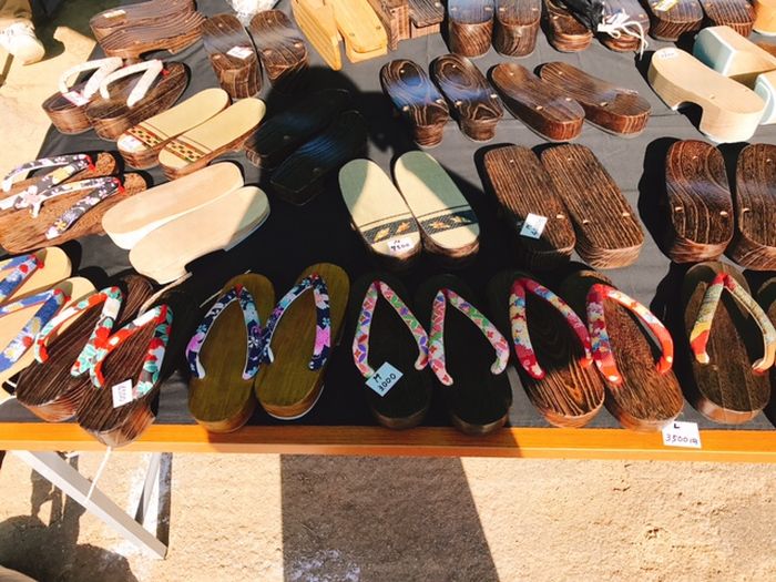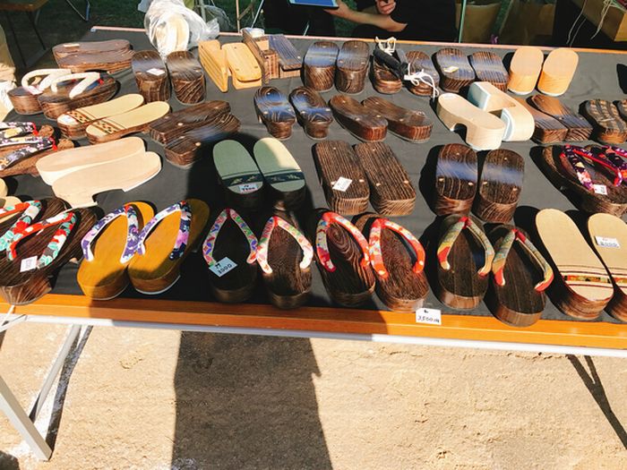 隣のブースの馬淵桐下駄製造販売店で下駄を見せてもらいました
