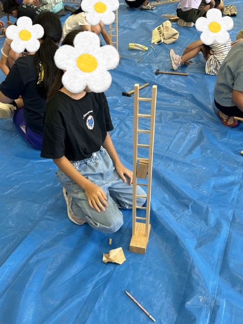 のこぎりや金づちを使うのが初めての子どもたちも多く、最初は緊張していたものの作業が進むにつれてみんなの笑顔があふれていました