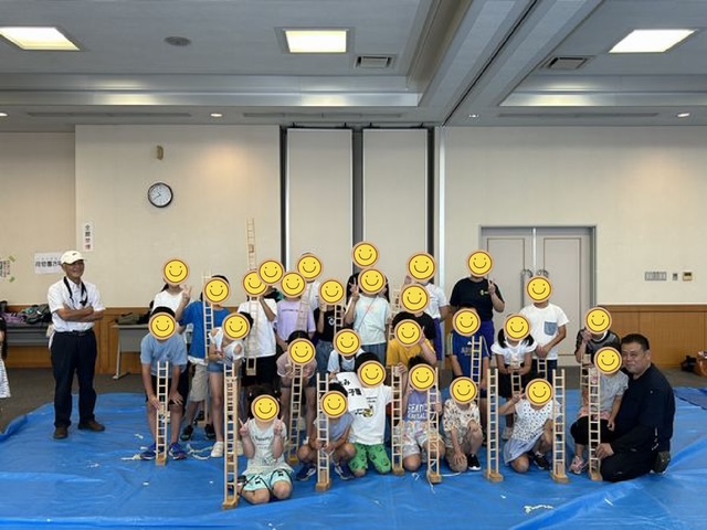 令和7年8月9日、まちづくり推進隊みの主催の小学生対象木工教室に今年も弊社がお手伝いとして参加させていただきました