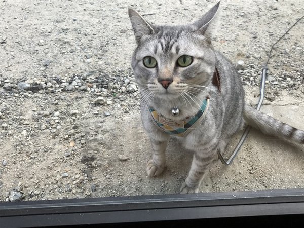 最近暖かいので看板猫のエースを外で遊ばせています